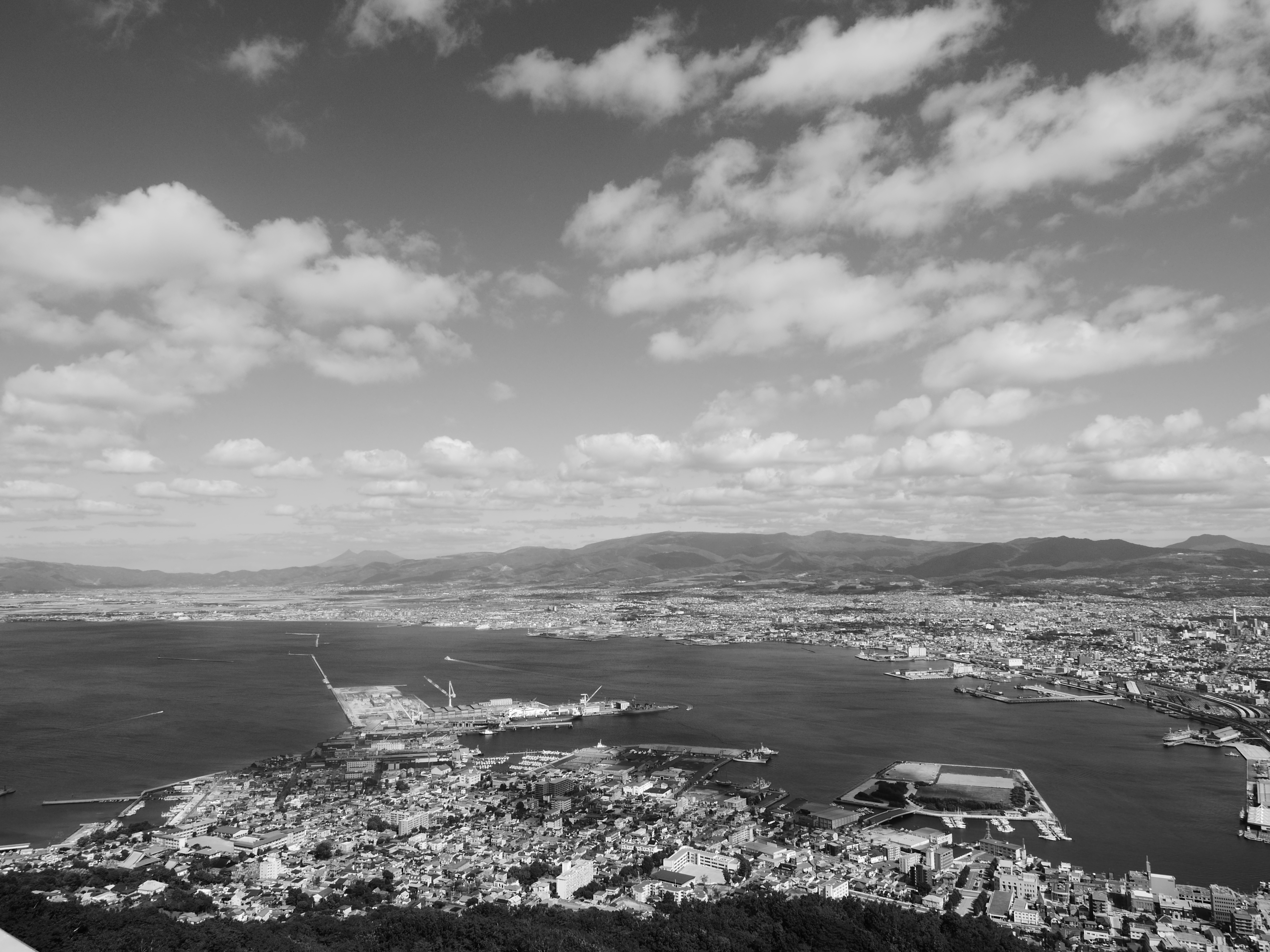 函館山から。 GH3のモノクロ設定。 12-35mm/F2.8レンズで解像感ばっちり。x |