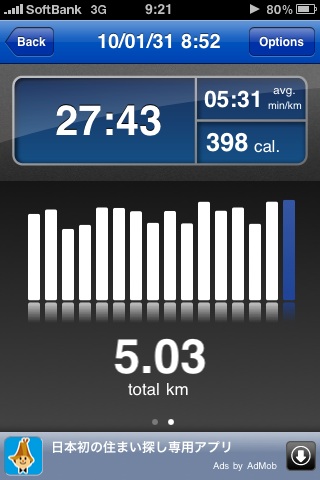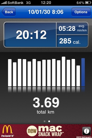 ![]() うん、ちょっと高いけどまずまずの使い心地。 音声で距離とかアナウンスしてくれるし、iPod連携もやってくれるし、webにデータを登録して記録重ねることできるし。 これなら多少続けられそうだ。 今日は1.5キロ。x |