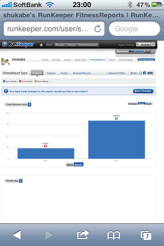 再度自分を奮起させるためにrunkeeper上で12月から3ヶ月で90キロ走る設定。x |